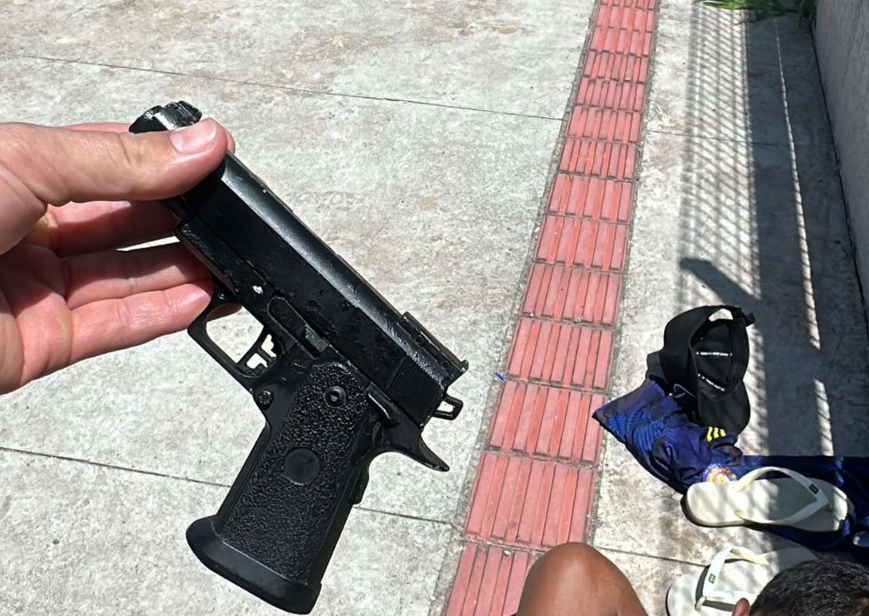 Segundo a equipe, o objeto possuía aparência semelhante à de uma arma real. Por isso, o simulacro dificultava a identificação como réplica durante a abordagem criminosa.