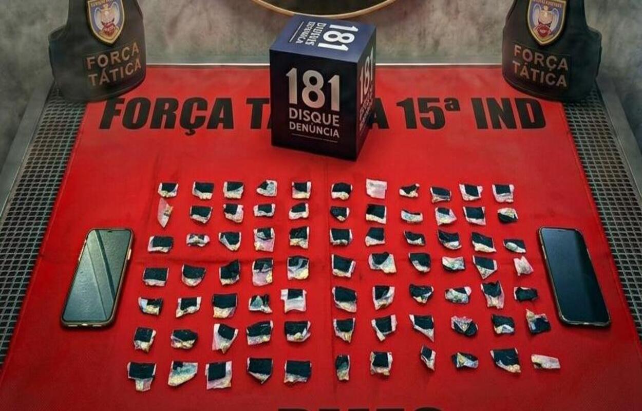 Durante a abordagem, os militares encontraram 75 pedras de crack e um pino de cocaína, todos já prontos para comercialização, além de dois aparelhos celulares.
