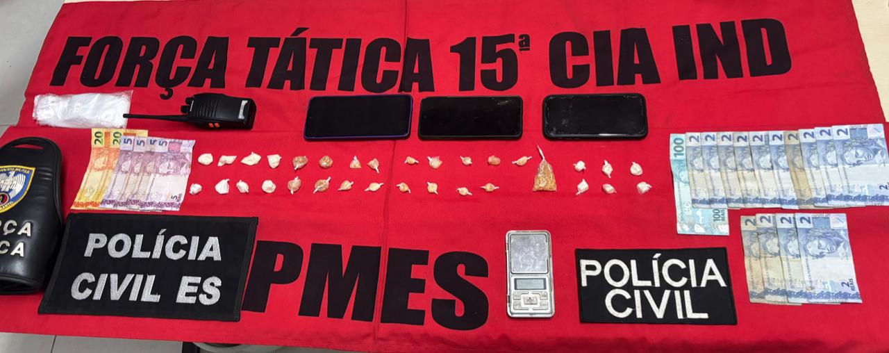 Ainda durante a ação, os agentes apreenderam uma balança de precisão. Segundo os investigadores, o equipamento costuma ser utilizado para pesar e separar porções de drogas destinadas à venda.
