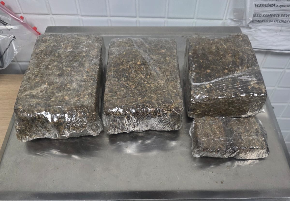Logo após a ação, os policiais recolheram o material e realizaram a verificação. Durante a inspeção, os agentes encontraram quatro tabletes de maconha.