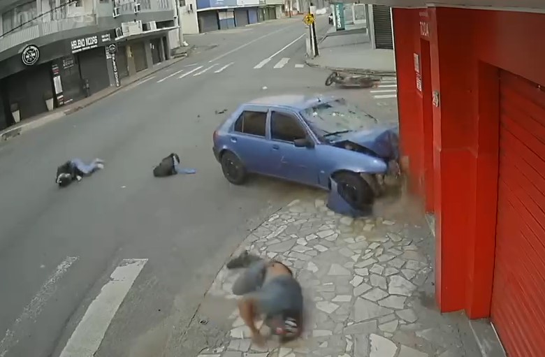 Vídeo flagra acidente em Cachoeiro de Itapemirim com três feridos. Colisão entre moto e carro ocorreu nesta sexta-feira.