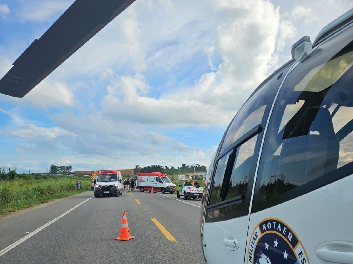 Diante da situação, o NOTAER foi acionado para apoiar o resgate. Assim, o helicóptero Harpia 10 realizou o transporte da vítima mais grave até o Hospital Estadual Dr. Jayme dos Santos Neves, na Serra.