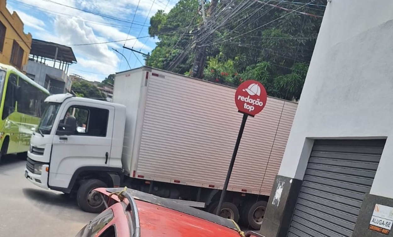 Outro caminhão ficou agarrado na Avenida Pinheiro Júnior, em Cachoeiro de Itapemirim, no mesmo trecho onde uma ocorrência semelhante já havia sido registrada na manhã desta quarta-feira (1º).