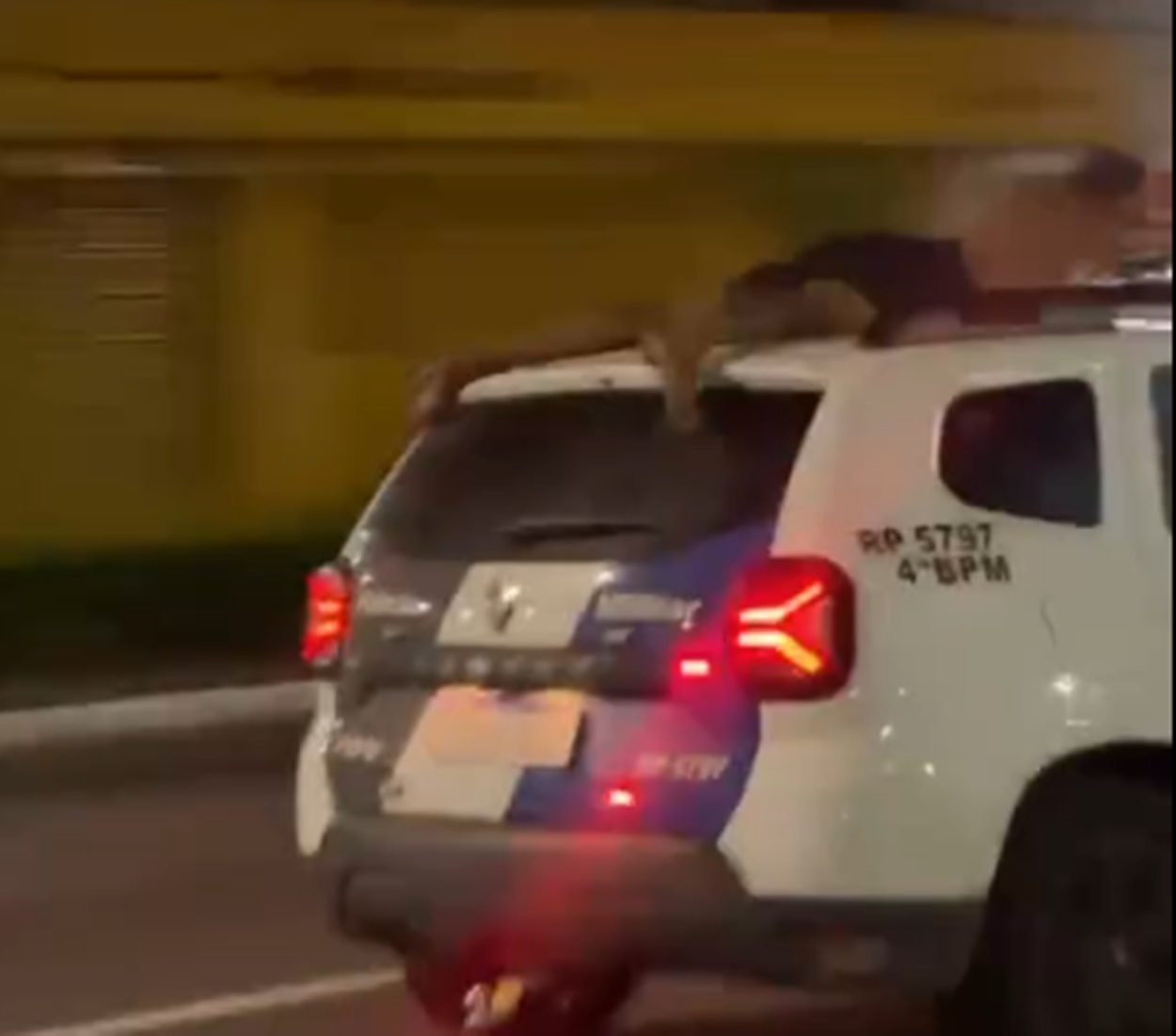 VÍDEO | Homem é flagrado agarrado no teto de viatura da Polícia Militar no ES