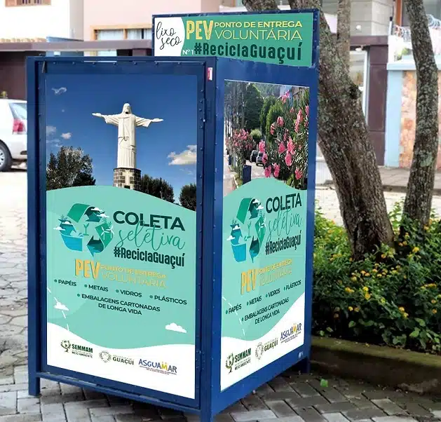 A Secretaria Municipal de Meio Ambiente (Semmam) de Guaçuí realizou a instalação de mais 10 Pontos de Entrega Voluntária (PEV) da Coleta Seletiva de resíduos recicláveis. A novas unidades foram instaladas desde a entrada do bairro Santa Cecília até as imediações da rodoviária. Com a implantação desses pontos, com novo layout, Guaçuí atingiu a marca de 118 PEVs, contando com mais 10 que serão entregues nos próximos dias. No ano de 2022, o município atingiu o recorde com 550 toneladas de resíduos reciclados, com destaque para vidros, componentes eletrônicos e quase 4 mil litros de óleo de cozinha usados. Segundo o secretário municipal de Meio Ambiente, Roberto Martins, essa ampliação tem o objetivo de aumentar a reciclagem e também substituir alguns PEVs que necessitam de manutenção. Além de garantir renda para os catadores da Asguamar e diminuir a incidência de lixo que o município leva para o aterro sanitário, em Cachoeiro de Itapemirim – serviço que é pago pela Prefeitura.