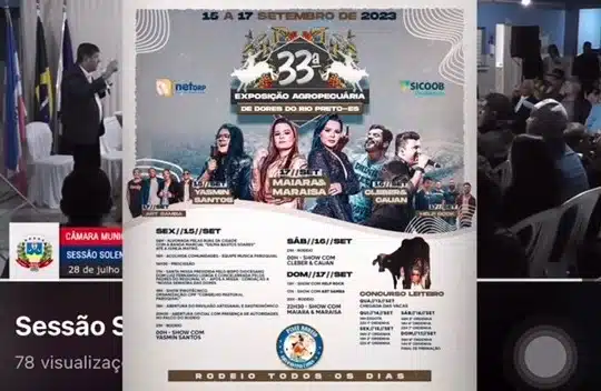 Ao mesmo tempo que o editor e divulgador do vídeo mostra a fala do prefeito de Guaçuí, na sessão solene, também destaca o cartaz da festa de Dores do Rio Preto, realizada recentemente, principalmente, o show da dupla Maiara e Maraysa. Com isso, o idealizador do vídeo insinua que a administração de Dores teria gastado muito dinheiro para realizar sua festa, o que deixou o prefeito do município, Ninho, revoltado com o vídeo que transformou o que seu colega de Guaçuí disse em um meme. Um sentimento que também pode se repetir em outros prefeitos, já que as festas se multiplicam neste período do ano, justamente, entre julho e novembro. Inclusive, a Expoagro de Guaçuí começa nesta sexta-feira (28), ou seja, vai ter festa no município também.