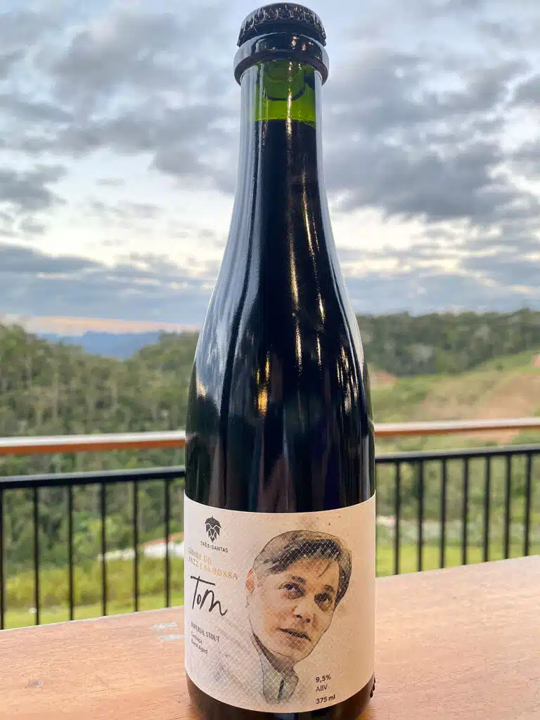 A primeira cerveja da coleção é a “Tom”, homenagem a Tom Jobim. Ela passou quatro meses maturando em barris de carvalho previamente utilizados para armazenar cachaça. Essa combinação resultou em uma cerveja com complexidade proveniente dos maltes, além de notas de côco oriundas do carvalho e um toque sutil dos aromas da cachaça envelhecida em barris de madeira.