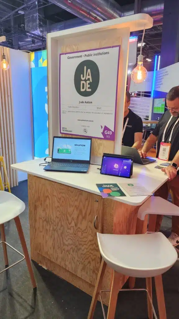 Em visita à Paris, o CEO e fundador da plataforma educacional capixaba Jade Autism, Ronaldo Cohin, participou nessa semana do Viva Technology – um dos maiores salões de tecnologia da Europa, que conecta startups, líderes do setor e investidores na Europa para debater soluções tecnológicas.  A plataforma – que promove o desenvolvimento cognitivo e social das crianças no espectro autista e com outras neurodivergências por meio de jogos e atividades lúdicas – foi uma das oito empresas brasileiras escolhidas pela ApexBrasil, o Ministério de Relações Exteriores (MRE), e a Embaixada do Brasil em Paris para participarem do evento. Na ocasião, o empresário apresentou a marca em um estande na feira, junto aos representantes da ApexBrasil, Adamita Mizuno e Roberto Machado. “Foi uma ótima oportunidade para aumentar nosso conhecimento sobre o mercado francês e ter orientações especializadas para elaboração de um plano de parcerias internacionais”, comemorou Cohin