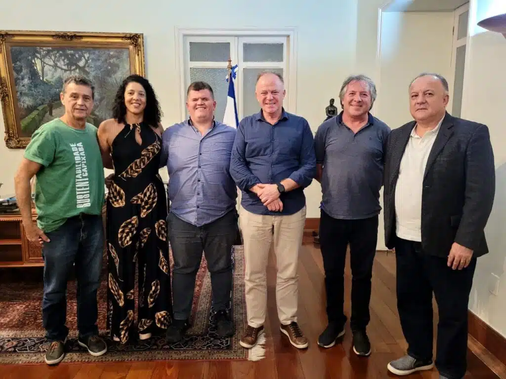 O governador Renato Casagrande e o Secretário Estadual de Meio Ambiente, Felipe Rigoni, receberam a equipe organizadora do Sustentabilidade Capixaba: Elias Carvalho, Paulo Renato Fonseca Junior, presidente do Convention Boreau de Vitória, e Pedro Paulo, diretor da empresa Clube Capixaba, produtora da Exposul Rural.