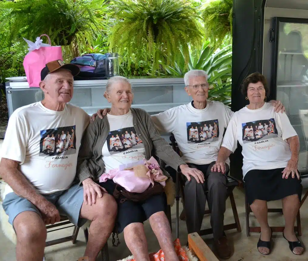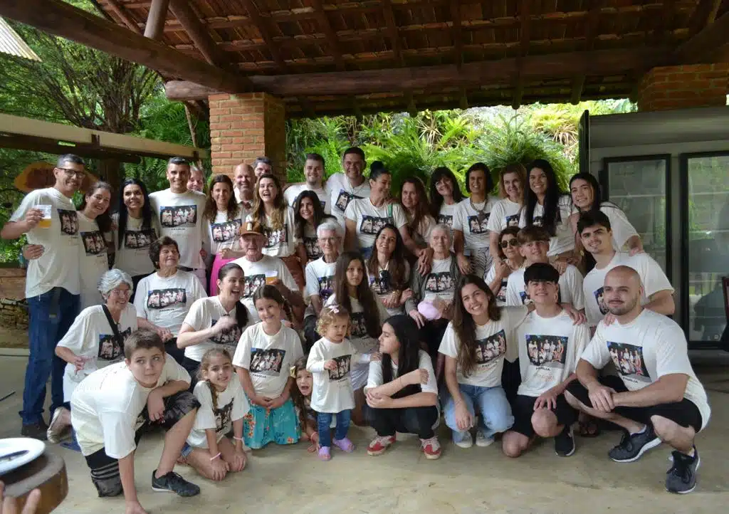 O último fim de semana foi muito especial para a família Fornazier. Os descendentes de Dina e Carlo Fornazier realizaram o primeiro encontro da família. Os filhos vivos de Carlo e Dina: Edio (Alemão) 81 anos, Tieta 93, Ermindo (Neném) 96, e Irene (Filinha) 89, reuniram seus filhos e netos no Chalé Arcangeluz, em São Vicente, para confraternizar e relembrar suas raízes.