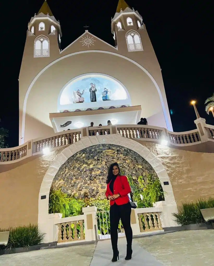 A bonita Secretária de Turismo de Marataízes, Sara Mezini, foi jurada na segunda edição do concurso “Garota Jussara”, de Rio Novo do Sul. Durante a passagem pela cidade, ela aproveitou para fazer um registro com a tradicional igreja Matriz.