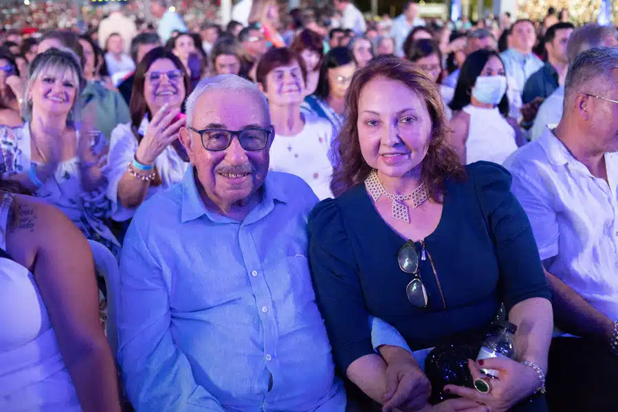 O irmão de Roberto Carlos, Carlos Alberto Braga e a esposa Maria de Fátima Veloso, prestigiando o grande espetáculo do artista em sua terra natal.
