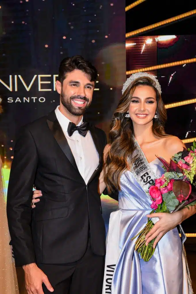 A Miss Universo Espírito Santo 2023, Anna Beatriz, com o coordenador do concurso, Charles Souza.