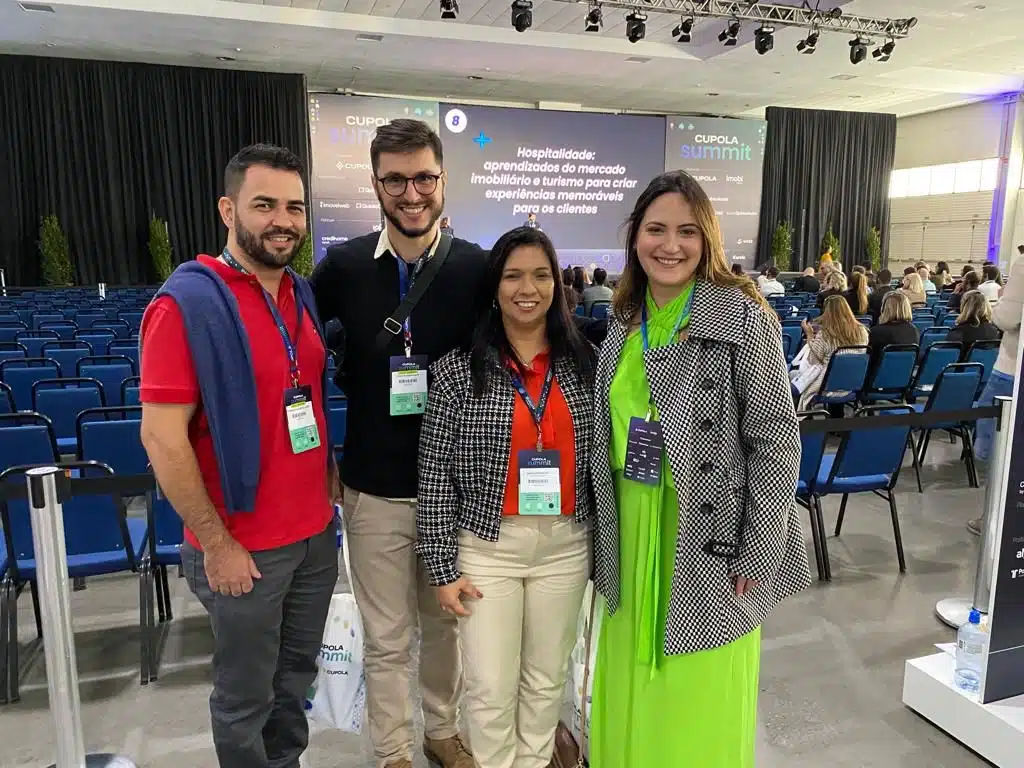 A Equipe da Tófano Netimóveis esteve em Curitiba/PR para o Cupola Summit, um dos maiores eventos nacionais do Mercado Imobiliário. Na foto, Emerson Sant’ana representando a locação de imóveis; Marla Wichello e Lucas Egramphonte, corretores de imóveis, e Maiara Tófano, CEO e sócia da empresa.