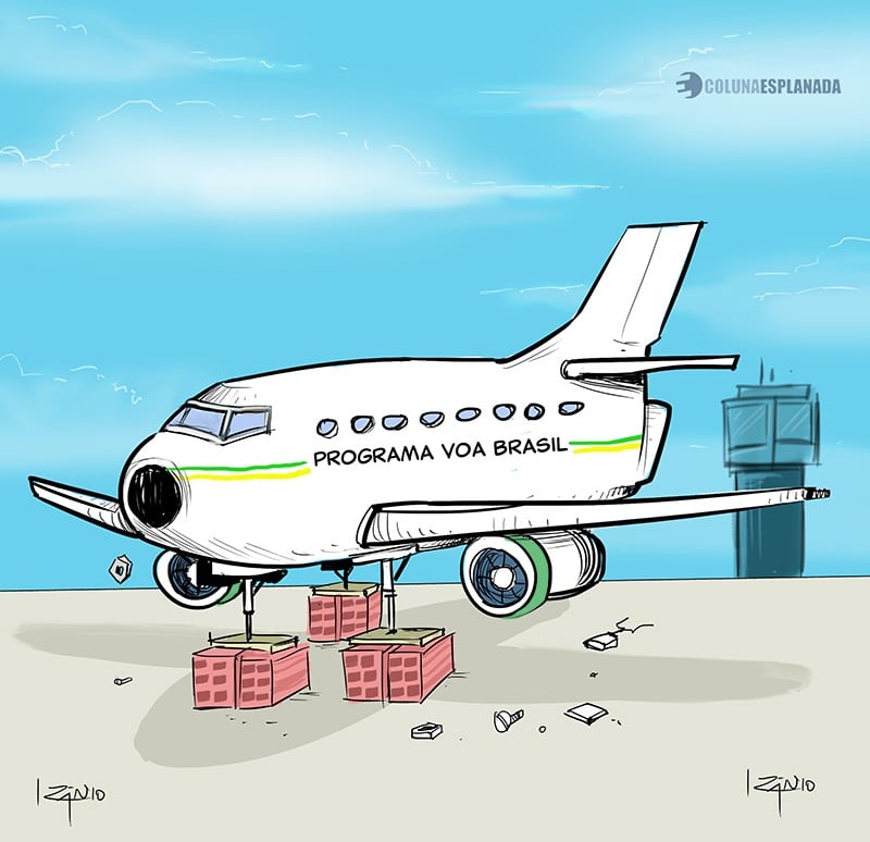 O programa Voa Brasil, que prevê passagens mais acessíveis, não decola. Teve que arremeter, pois o Governo e as empresas não pavimentaram