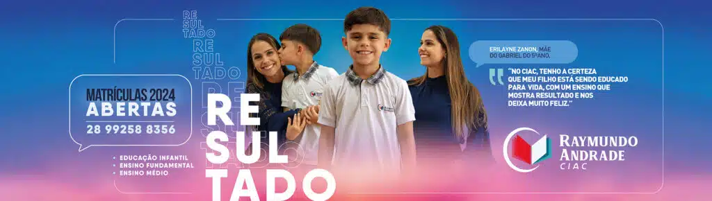 Os pais que desejam matricular seus filhos em uma escola que é pioneira e referência em ensino de qualidade em Cachoeiro de Itapemirim devem ficar atentos. Já estão abertas as matrículas para o ano letivo de 2024 no Centro Integrado de Atividades Culturais Raymundo Andrade – CIAC.
