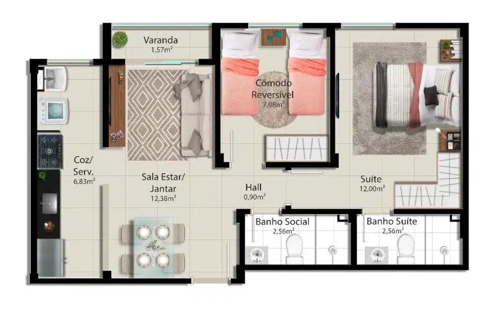 Um dos sócios-diretores do Grupo Ilha, Lucas Brandão, ressalta o diferencial dos quartos, que foram elaborados como cômodos reversíveis. “Esse é um cômodo que pode mudar ao gosto do proprietário, respeitando a individualidade de cada um, ou seja, se em vez de quarto, a pessoa optar por uma sala maior, um closet, ou um escritório, nós não subiremos as paredes internas, que servem apenas como vedação e não possuem função estrutural”.