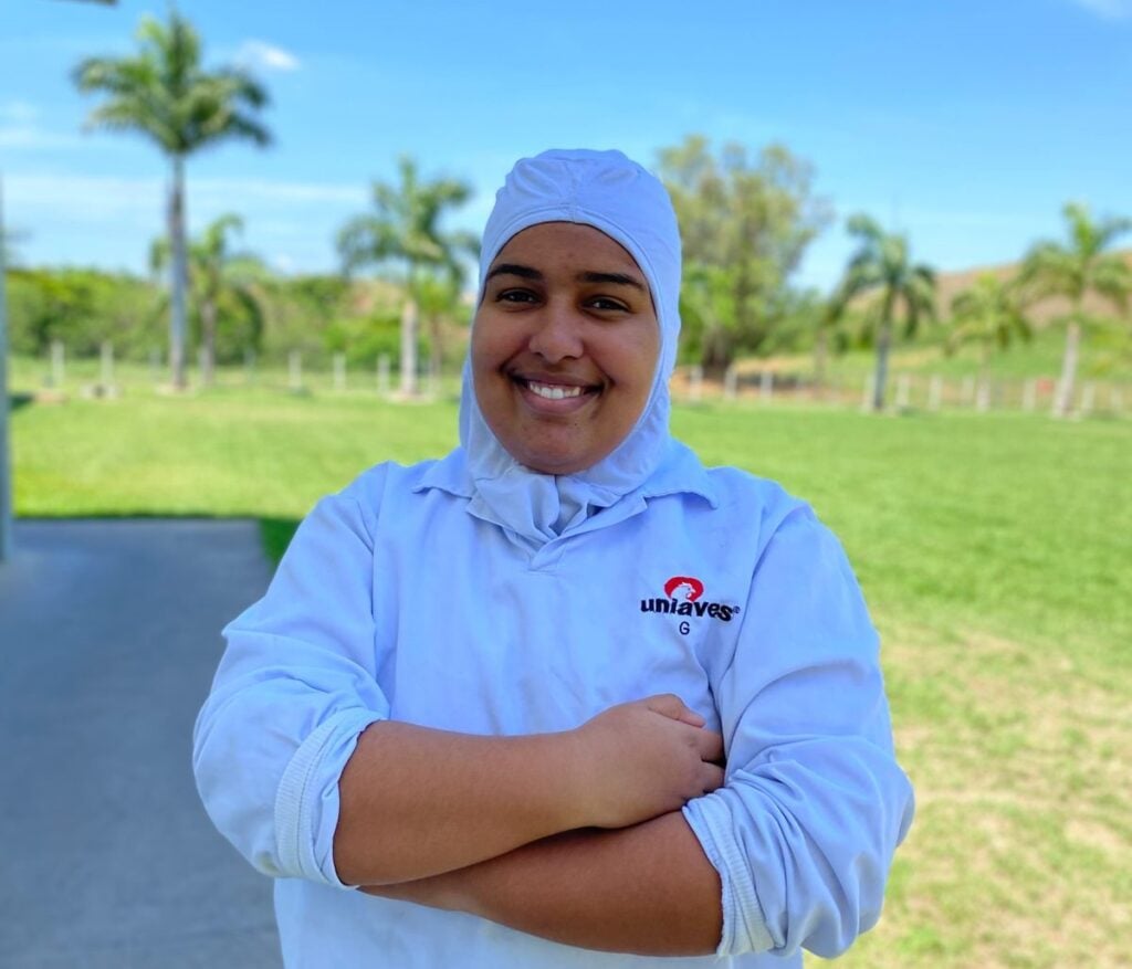 Kayllane aproveitou a Feira para aderir a um aplicativo de atendimento médico online, que permite consultas para o colaborador e um familiar sem custos para o profissional. Para ela, essas iniciativas fazem diferença no dia a dia: “Eu acho que os incentivos oferecidos pela Uniaves são importantes, pois nos motivam a buscar o nosso desenvolvimento, saúde e bem-estar. Nem todas as empresas oferecem essas oportunidades”, afirma. Entre os benefícios que mais chamam sua atenção estão a remuneração variável, o kit de produtos Pif Paf Alimentos e a folga no aniversário.