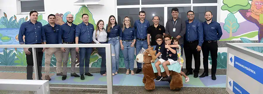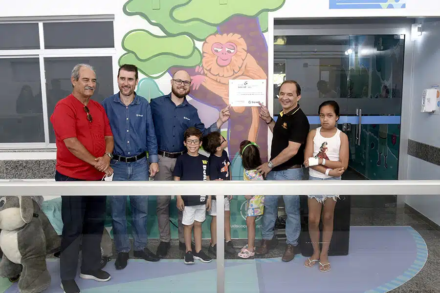 Receba as principais notícias no seu WhatsApp! clique aquiPara iniciar oficialmente e descerrar a placa inaugural, participaram do ato, o superintendente do HIFA, Jailton Pedroso, os representantes do Sicredi, César Augusto Butzen, Gerente Regional de Desenvolvimento e Fabrício de Oliveira Franco, Gerente da Agência e a Laislany, de 9 aninhos representando todas as crianças da enfermaria do HIFA.