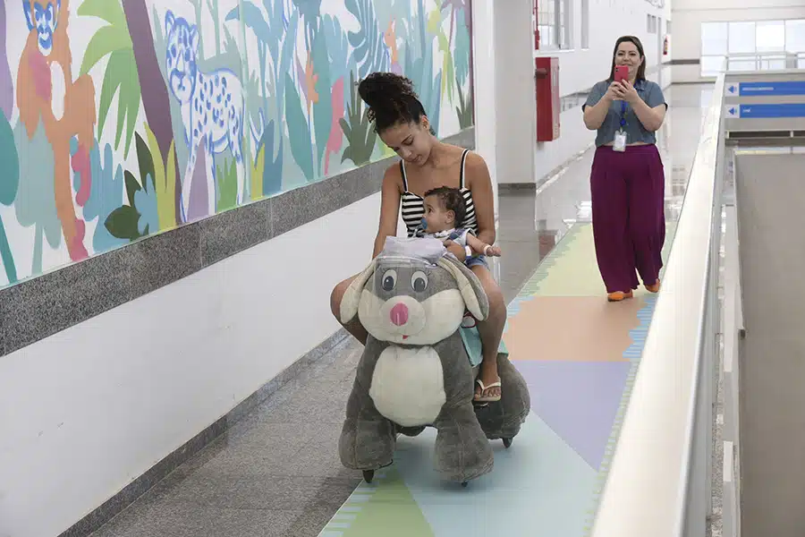 Mesmo aqueles que não passaram por procedimentos cirúrgicos foram convidados a percorrerem os corredores do hospital em cima de bichinhos elétricos e contemplando a floresta encantada HIFA.