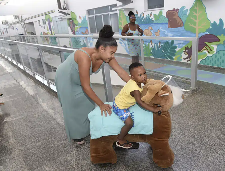 O projeto foi aprovado pela Maristela da Silva Oliveira, mãe do pequeno Bryan de 1 aninho. “Ele ficou oito meses na UTI, teve alta recentemente, mas precisou retornar. Foi muito bom possibilitar a ele a oportunidade de uma atividade diferente, mesmo ele não entendendo ainda. Andei no bichinho junto com ele e adorei”, contou.