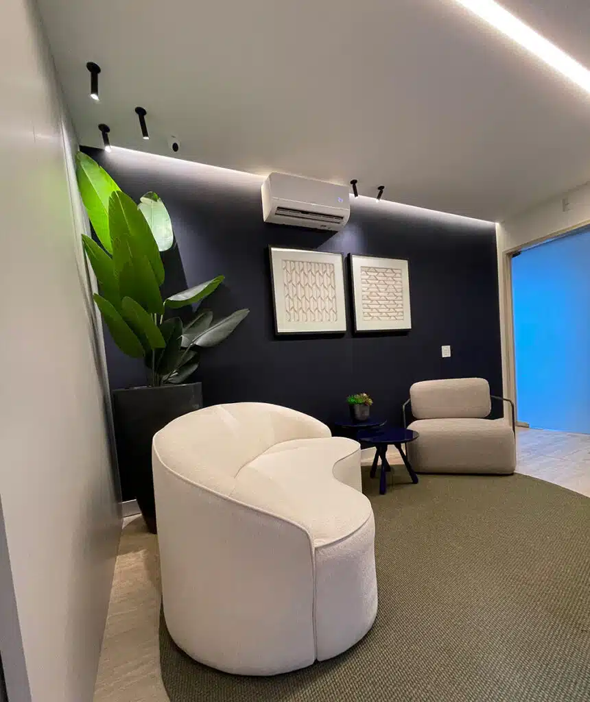 Tudo dentro do novo espaço foi pensando para que o paciente se sinta “em casa”, desde a recepção com suas poltronas e sofás, com cafés e biscoitos e um banheiro projetado para cadeirantes. Tudo decorado com tons leves e sóbrios para que experiência durante a visita seja a melhor possível, sem aquela ansiedade típica de um consultório odontológico.