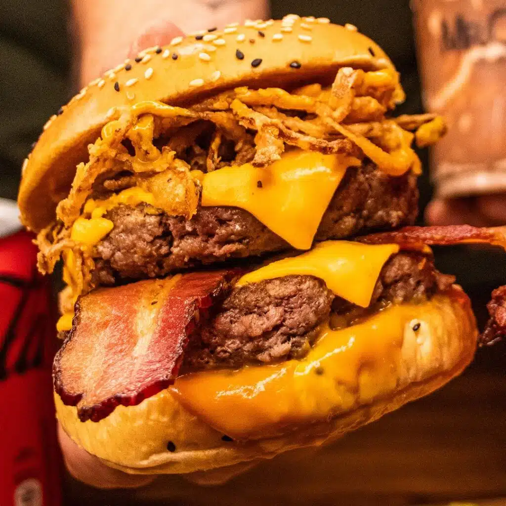 Cheese Master: pão, duas carnes smash, duplo cheddar, muçarela empanada e maionese de ervas