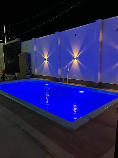 Um dos grandes trunfos para quem contrata é a área gourmet e a copa de apoio. Pensada tanto para famílias que gostam de colocar a mão na massa quanto para receber buffets externos exigentes, a cozinha se destaca pela organização: conta com fogão industrial, churrasqueira, freezer cervejeiro, geladeira, amplas bancadas e uma rede elétrica robusta com tomadas 110V e 220V bem distribuídas.