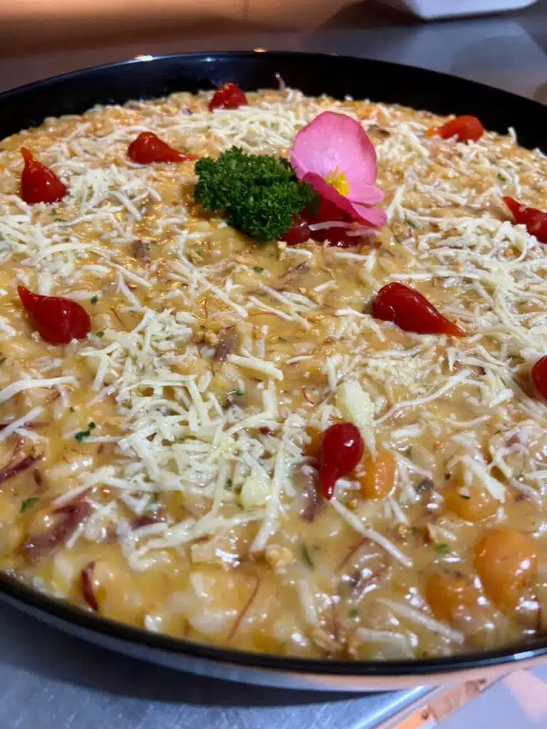 Receba as principais notícias no seu WhatsApp! clique aquiCada risoto apresentava um perfil de sabor, combinando texturas e aromas de forma equilibrada. Os clientes foram convidados a explorar diferentes combinações, passando pelas seguinte receitas: Risoto de Pato; Risoto de Limão siciliano com Salmão; Risoto de Tomate Seco com Rúcula; Risoto de Abobrinha com Bacon; Risoto de Carne Seca com Abóbora; Risoto de Cogumelos; Risoto de Gorgonzola; Risoto de Damasco com Brie; Risoto de Frango com Alho Poró e Risoto de Linguiça Suína com couve Crispy.