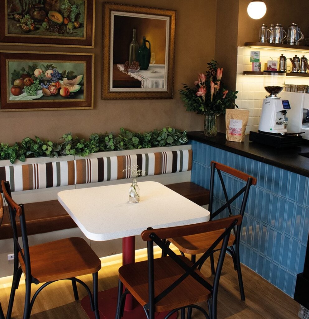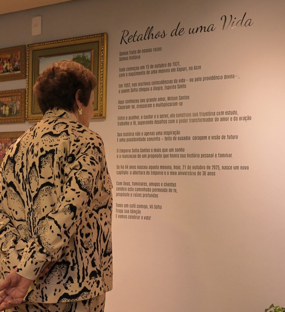 Sendo assim, Empório Sofia Santos oferece mais do que um cardápio delicioso. O espaço é uma experiência sensorial completa. O ambiente foi pensado para envolver todos os cinco sentidos: visão, tato, paladar, olfato e audição. A escolha cuidadosa das músicas e os detalhes da decoração têm como objetivo proporcionar bem-estar e aconchego. Além disso, o espaço conta com um altar de Nossa Senhora das Graças, símbolo de fé e gratidão, ao lado de uma imagem do Divino Espírito Santo e de obras pintadas por Dona Sofia.