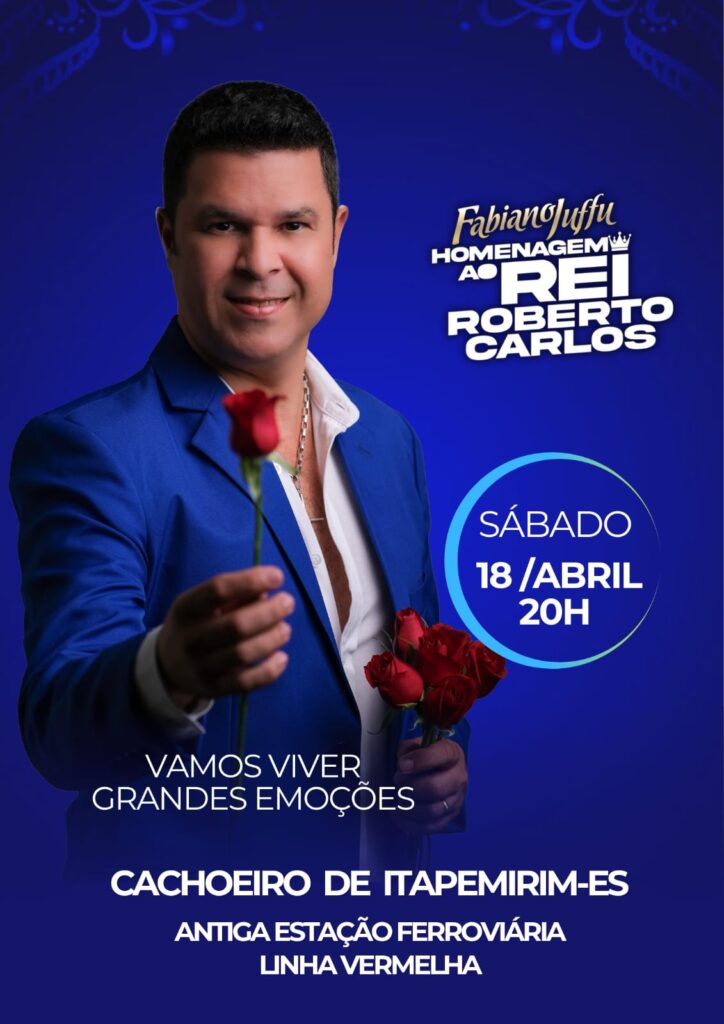 Cachoeiro de Itapemirim entra no clima de celebração pelos 85 anos de Roberto Carlos, comemorados neste domingo (19). No entanto, antes da data especial, a cidade já se prepara para uma noite de emoção com o show “Homenagem ao Rei”, apresentado pelo cantor, compositor e um dos maiores imitadores do Brasil, Fabiano Juffu, neste sábado (18), a partir das 20h.