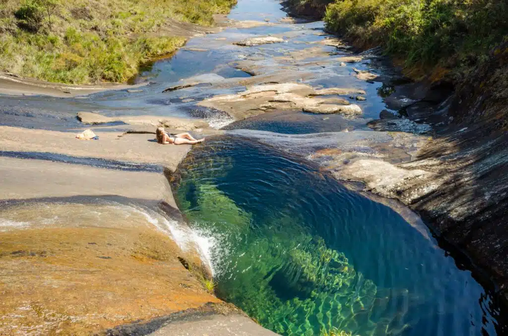 Famosa nas redes sociais devido ao seu visual incrível, a cachoeira tem poços de águas verdes translúcidas, perfeitas para mergulhos. Além disso, conta com uma paisagem cinematográfica e atrai diversos visitantes.  Nos arredores há restaurante e banheiro.