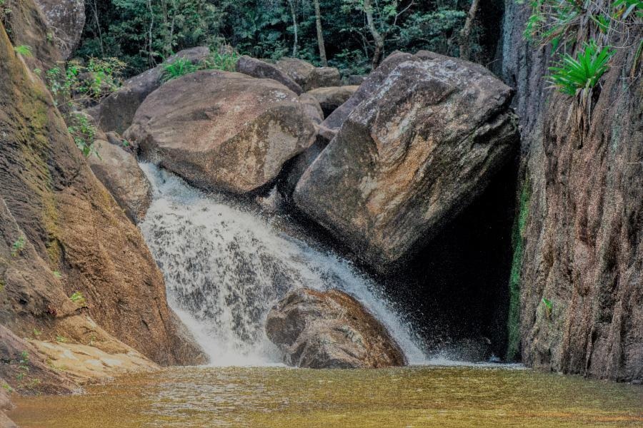 Por fim, em meio às montanhas, a cachoeira proporciona um ambiente mais tranquilo. Com piscina natural e bar, funciona aos fins de semana e feriados, das 8h às 18h, com entrada de R$ 5.