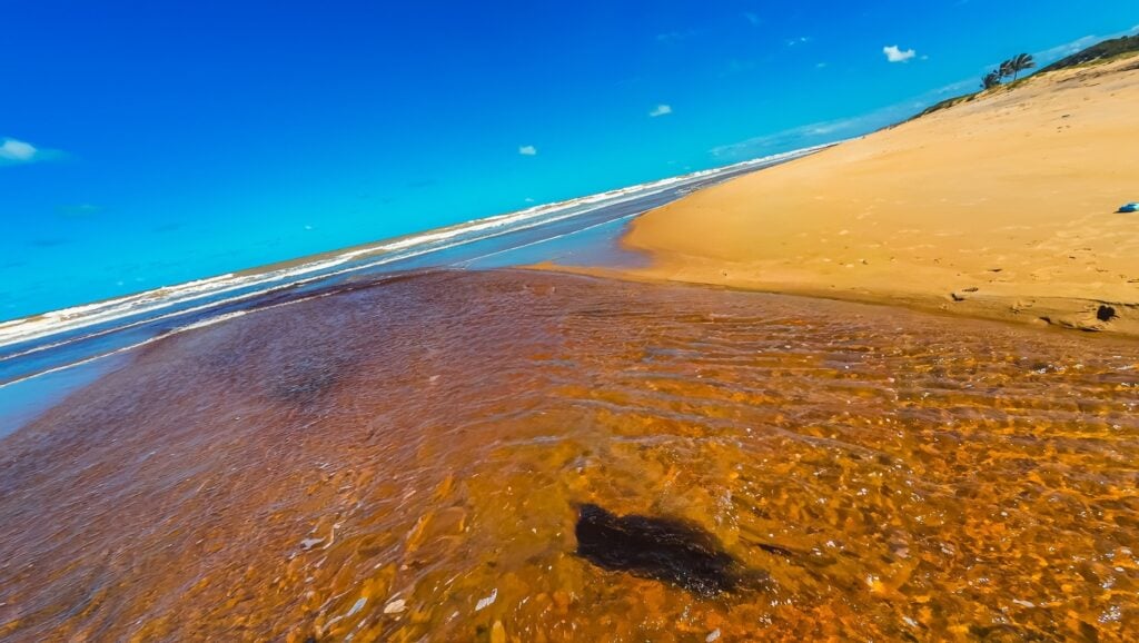 Entre as paisagens mais preservadas do litoral brasileiro, Riacho Doce, em Conceição da Barra, no extremo Norte do Espírito Santo, é um verdadeiro refúgio natural. Localizada dentro do Parque Estadual de Itaúnas, a praia fica a cerca de 17 quilômetros da vila e encanta por sua beleza selvagem, a tranquilidade do mar e o encontro harmonioso entre rio e oceano.