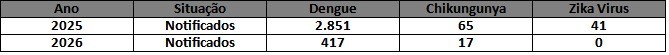 1. Quais são os índices atualizados de dengue, zika e chikungunya em 2026?