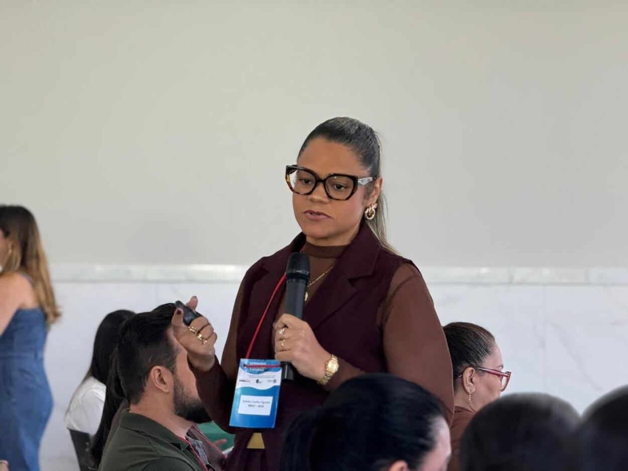Samilla Figueira palestra sobre acesso e gestão na saúde pública.