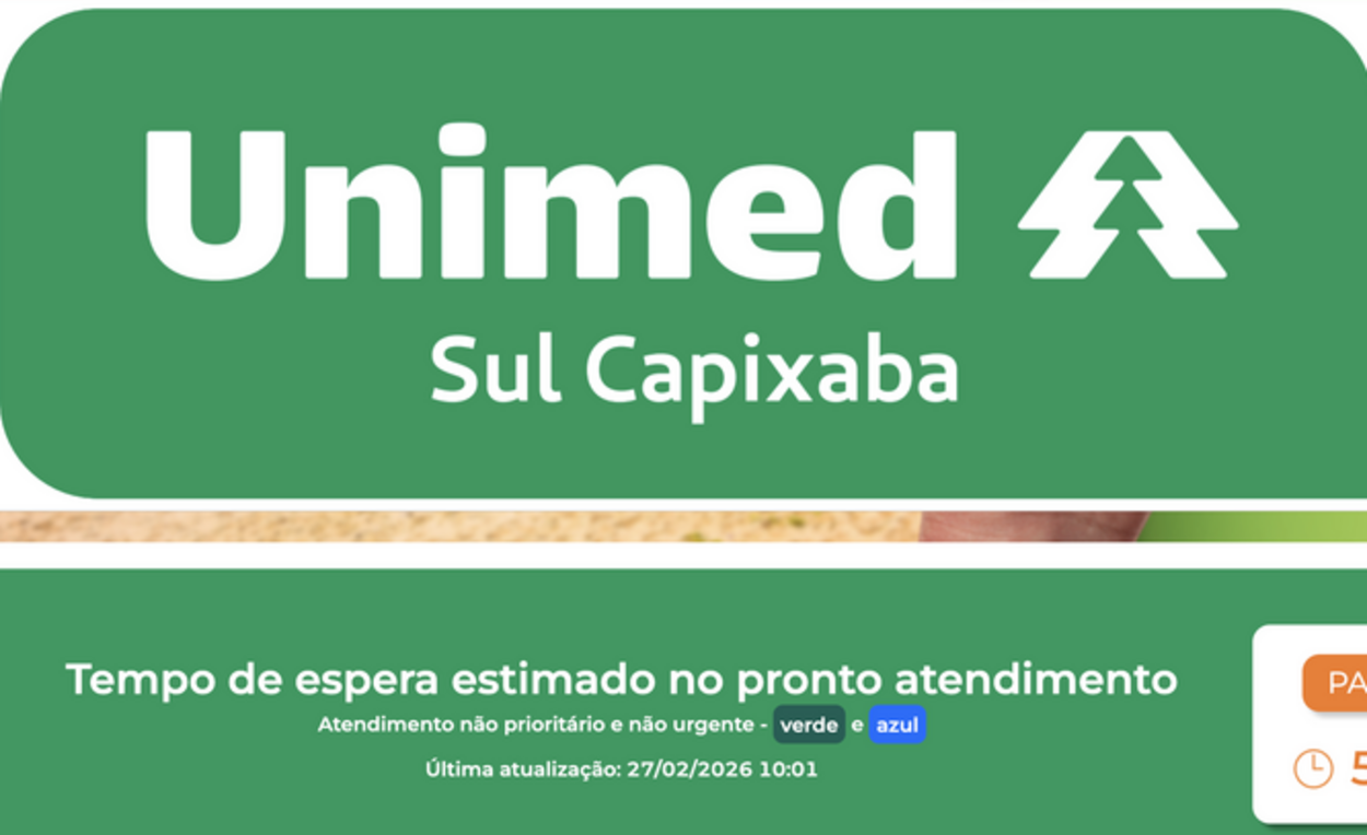 Ferramenta digital da Unimed Sul Capixaba mostra, em tempo real, o tempo de espera no PA adulto, infantil e digital.