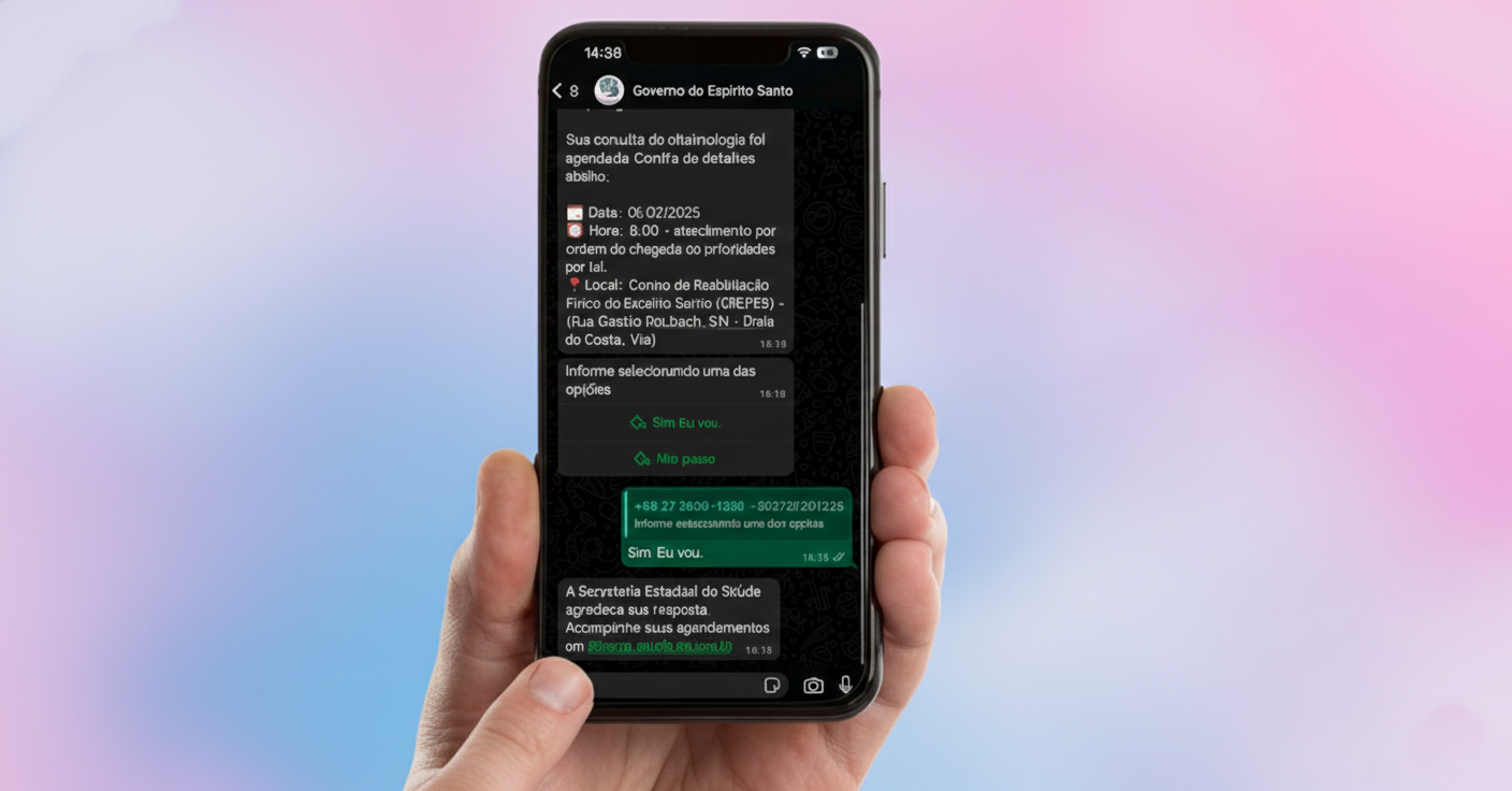 Os pacientes do Sistema Único de Saúde (SUS) no Espírito Santo passaram a receber avisos de agendamento de consultas e exames por meio do WhatsApp oficial do Governo do Estado, no número (27) 3636-1236.